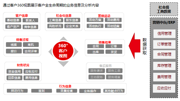 提供了各渠道客戶從潛在、準入、變動到流失的的全周期的業(yè)務支撐;企業(yè)各營銷角色可實時獲取客戶分布、客戶基本信息、關鍵人、資產(chǎn)需求、銷售過程、業(yè)務交易等,實現(xiàn)客戶360度視圖的全面透視,沉淀客戶業(yè)務數(shù)據(jù),形成企業(yè)客戶資產(chǎn)。
