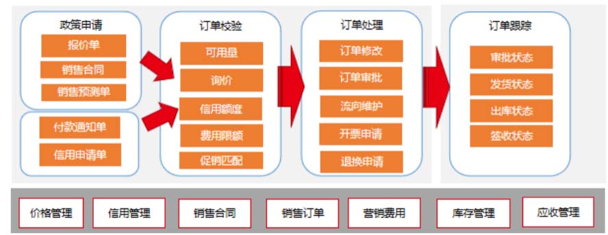 覆蓋企業(yè)與客戶交易代客下單業(yè)務,以及圍繞訂單交易的價格、政策、收款等上下游業(yè)務協(xié)同支撐