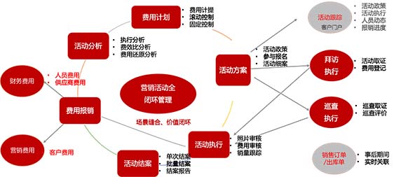 覆蓋企業(yè)面向潛在市場、各級渠道客戶的多類營銷推廣活動(陳列、鋪市、品鑒、團購、訂貨會、市場會議等),覆蓋從費用計劃、方案申請、活動執(zhí)行、結案、費用核銷的全過程閉環(huán)管理,助力企業(yè)實現(xiàn)費用可控、過程透明、產(chǎn)出高效的業(yè)務目標