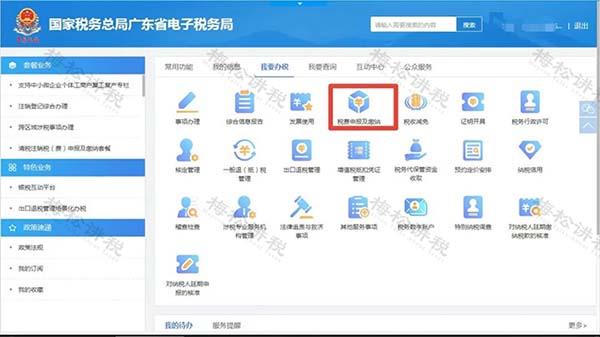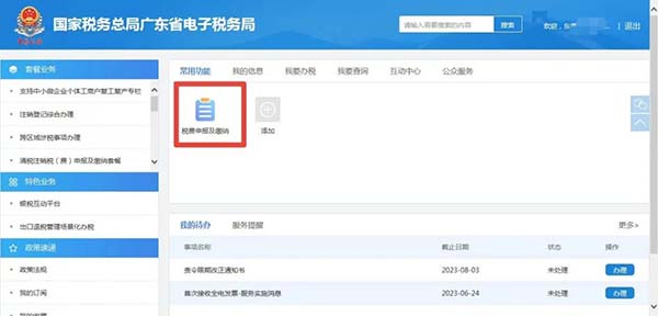 納稅人可登錄電子稅務(wù)局,點(diǎn)擊首頁左邊“常用功能—稅費(fèi)申報(bào)及繳納”模塊,或點(diǎn)擊“我要辦稅—稅費(fèi)申報(bào)及繳納”。