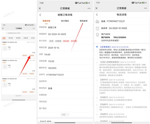用銷售訂單生成銷貨單之后在小程序里就可以看到物流發(fā)貨的單號(hào)了,但是點(diǎn)擊詳情還是看不不到物流詳情的具體信息